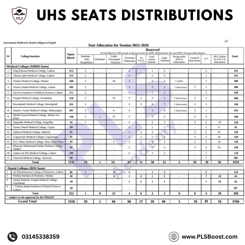 - Total MBBS Seats in UHS = 3376