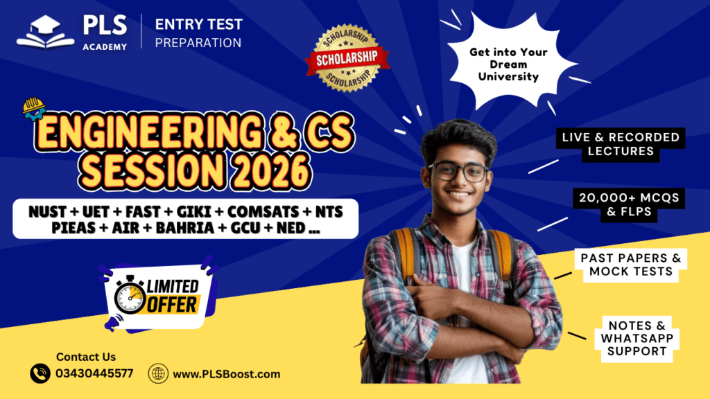 PLS Academy provides fully solved UET ECAT Past Papers with detailed step-by-step solutions, clear explanations, and exam-focused strategies. These solved papers are updated according to the latest ECAT syllabus and question trends, helping students strengthen weak areas, revise efficiently, and maximize their scores in UET ECAT and other top engineering entrance exams.